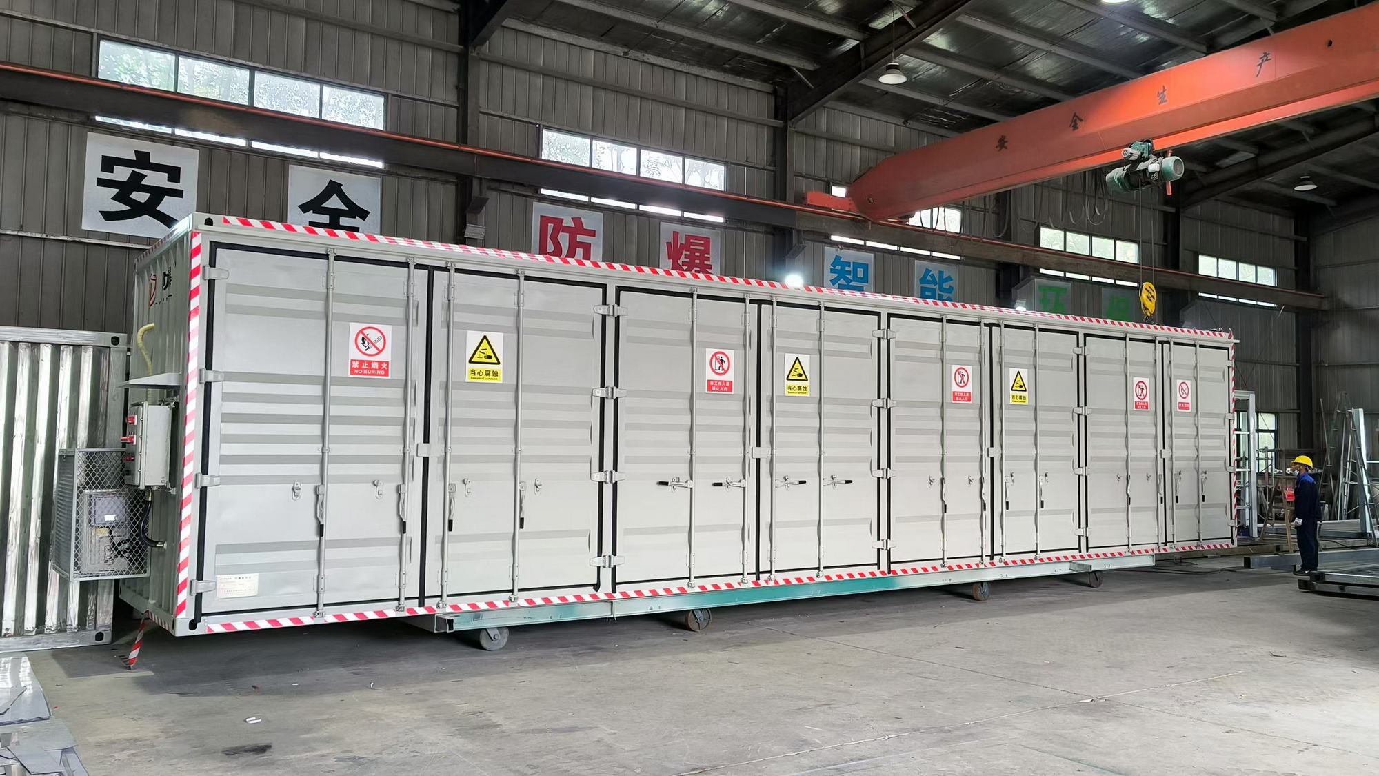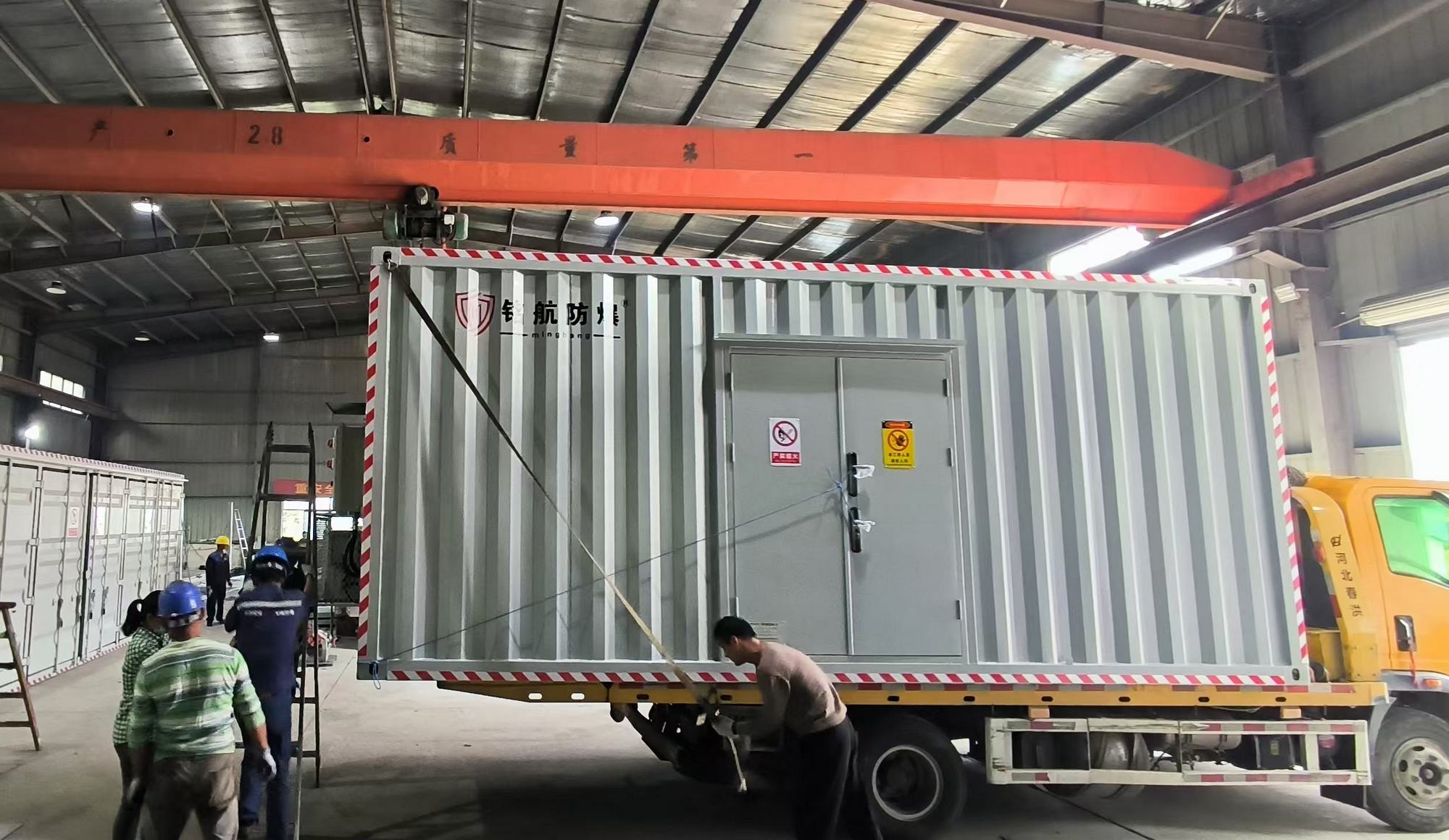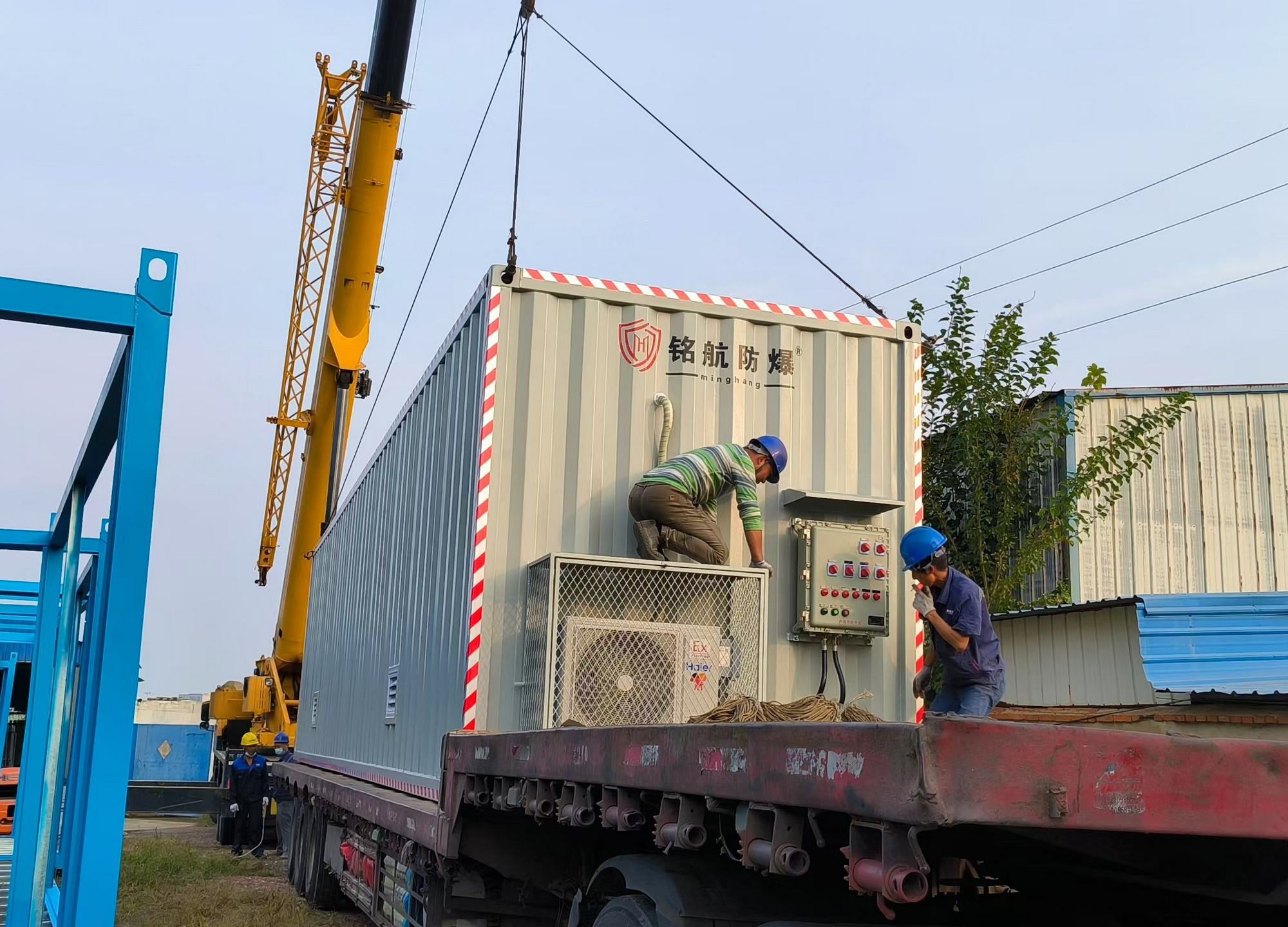 防爆集裝箱設有防爆配電箱 1 臺,內部元器件采用正泰品牌,防爆標志 EXdeIIBT4GB.滿足內部照明、風